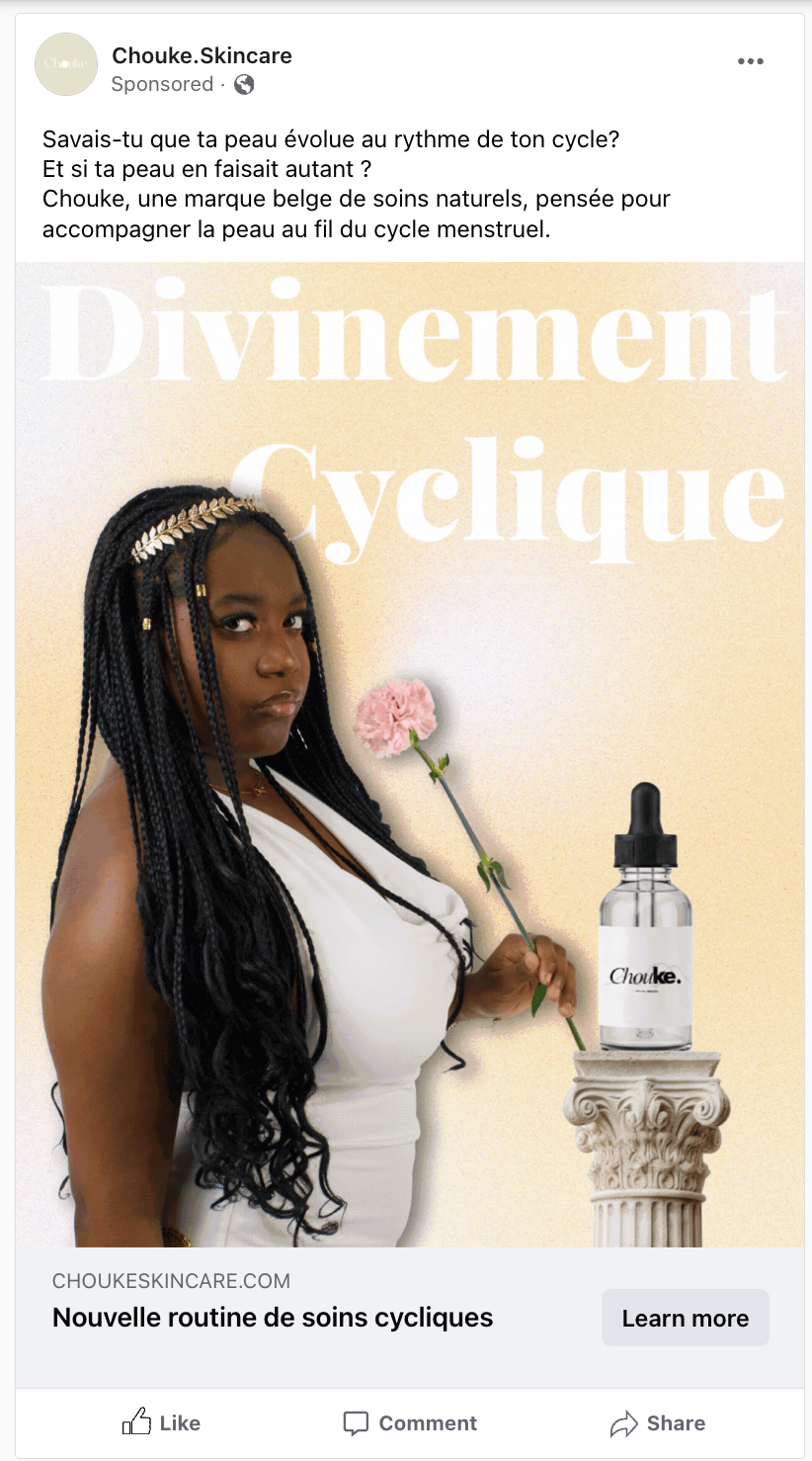 La marque s’adresse à des femmes de 18 à 40 ans, vivant en Belgique, attentives à leur skin care et conscientes du lien entre leur cycle hormonal et l’état de leur peau.
